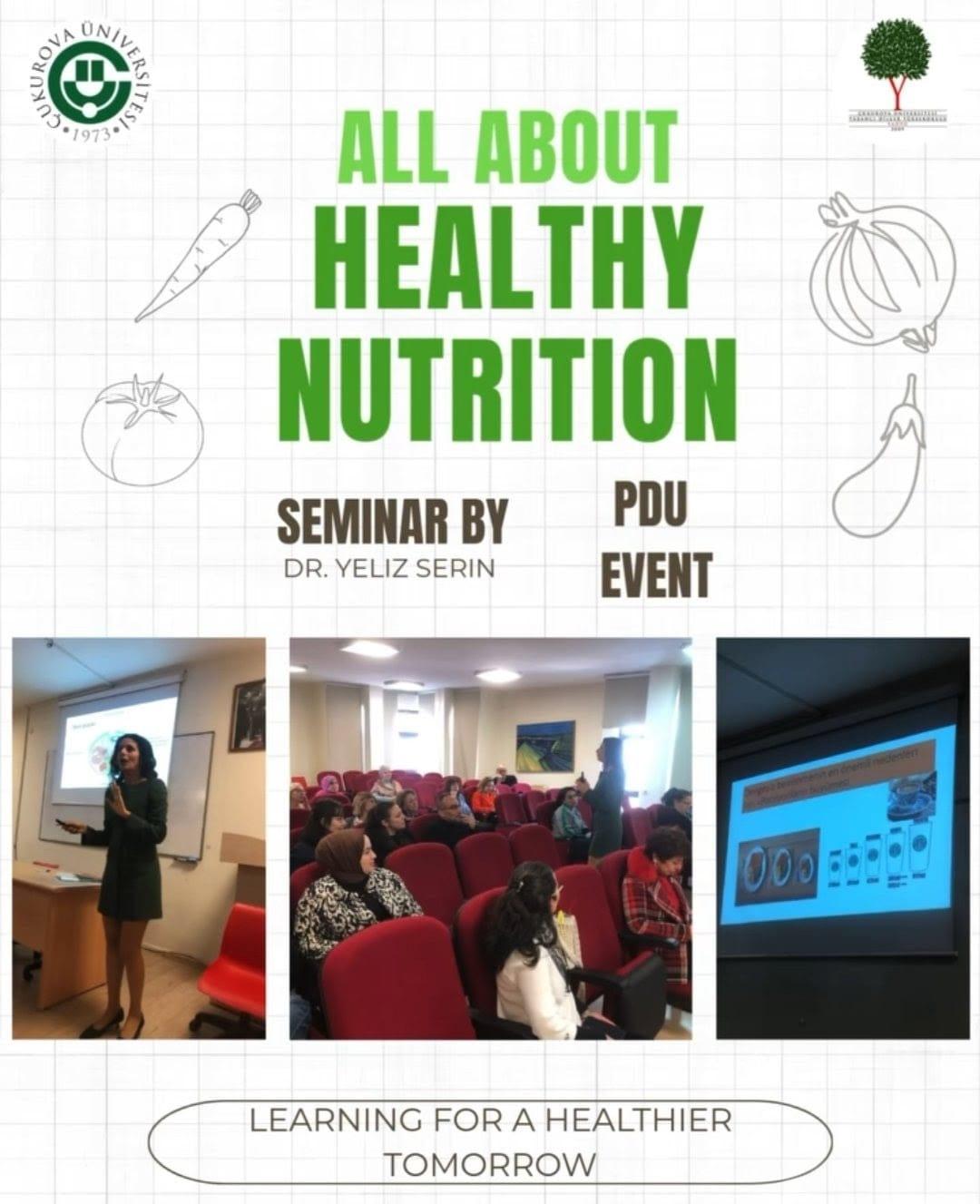 The PDU team organized another event on December 24, 2025, titled "Her Yönüyle Sağlıklı Beslenme" by Dr. Yeliz SERİN from the Department of Nutrition and Dietetics at Çukurova University.