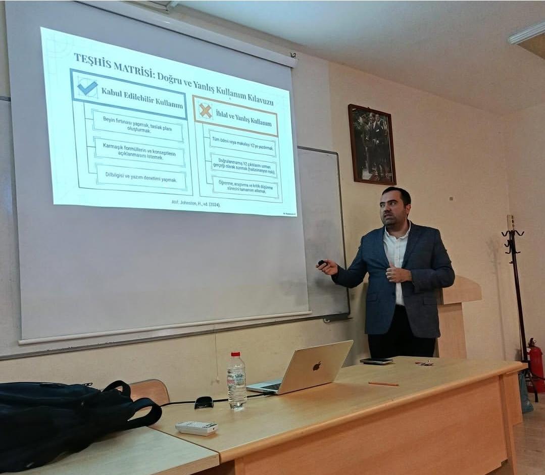 The latest PDU event focused on AI Ethics with Assoc. Prof. Yusuf Kuvvetli who delivered a seminar at the School of Foreign Languages on Friday. Yusuf Kuvvetli is currently serving as the Vice Dean of the Faculty of Engineering at Çukurova University. The seminar provided a comprehensive review of the history of artificial intelligence, addressing core concepts and explaining the underlying mechanisms of AI learning pathways. The ethical implications of and academic applications into the student learning environment were also discussed.